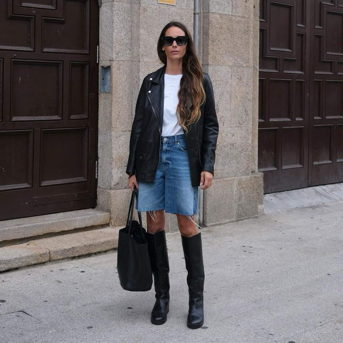 large tote in grained leather
